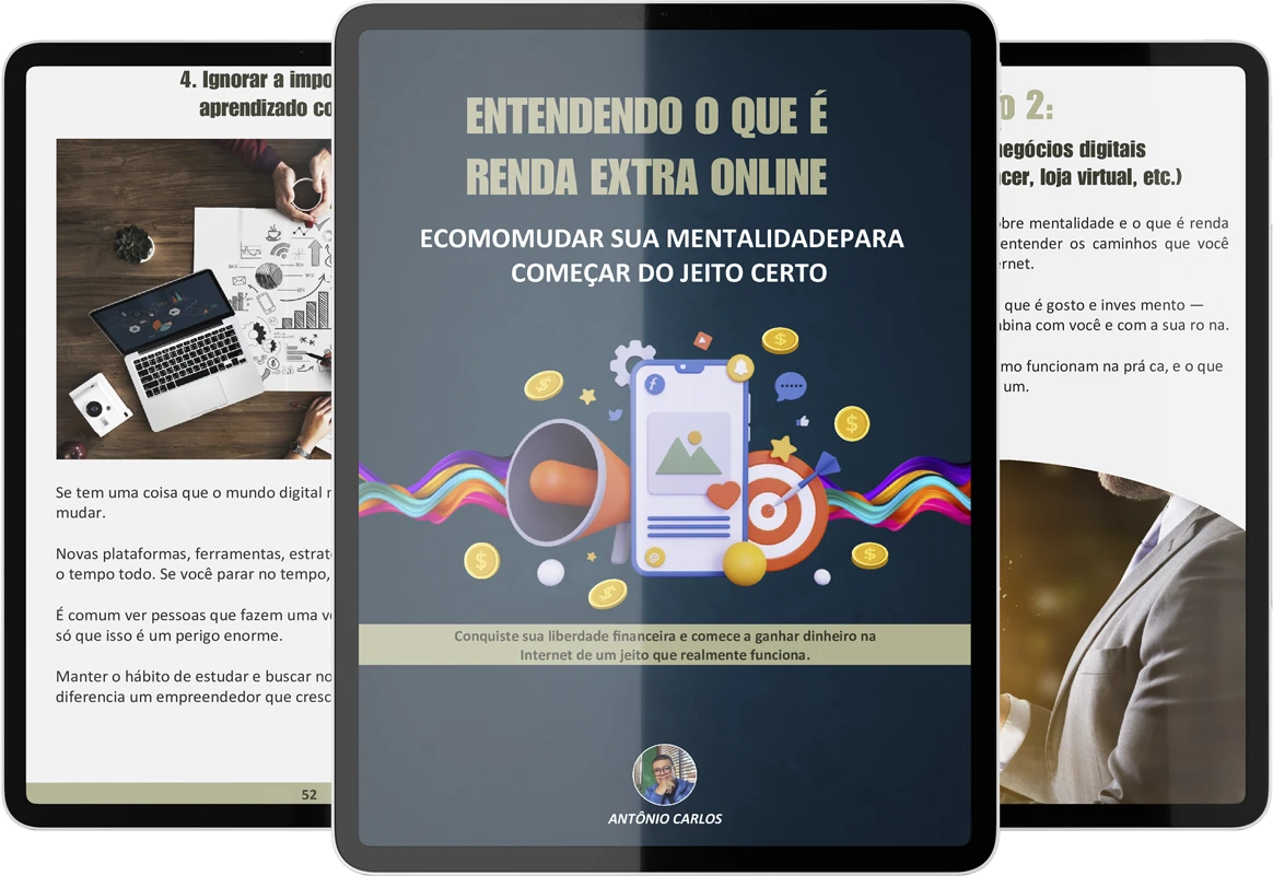 Ao longo do eBook “Entendendo o que é Renda Extra Online e Como Mudar Sua Mentalidade para Começar do Jeito Certo”, você vai aprender: